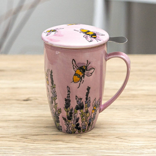 Spring Honeybee Design 15oz Tea Mugs with Lid and Infuser for Loose Leaf Tea