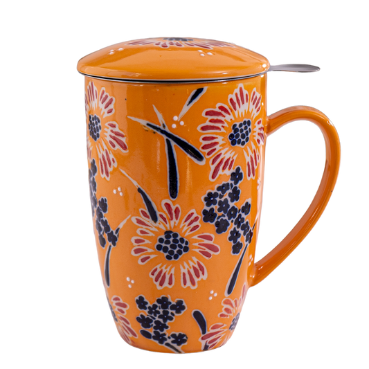 Yellow Flower Design 15oz Tea Mugs with Lid and Infuser