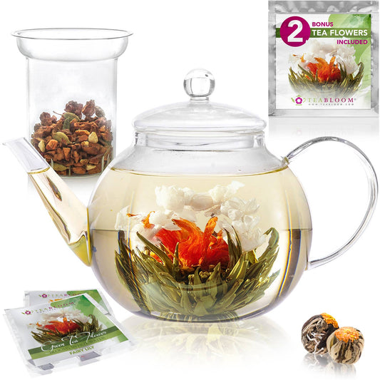 Teabloom Celebration Stovetop & Microwave Safe Glass Teapot