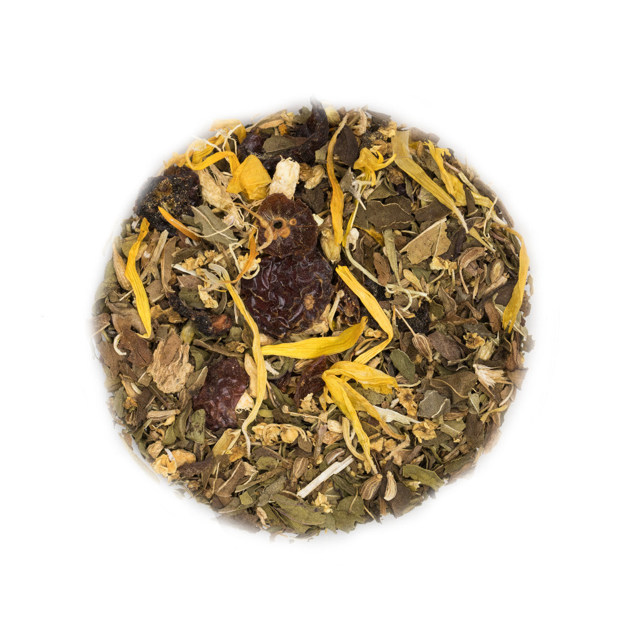 Our Cold & Flu Herbal Blend is the perfect antidote to the discomforts of being under the weather. This blend offers a variety of tastes that energize the body and and comfort the senses. Ginger and anise seed excite your immune system, while peppermint and yarrow work soothe. Elder flower flushes out your system, and rosehips top you up with fantastic vitamin C. This light refreshing cup packs a punch!