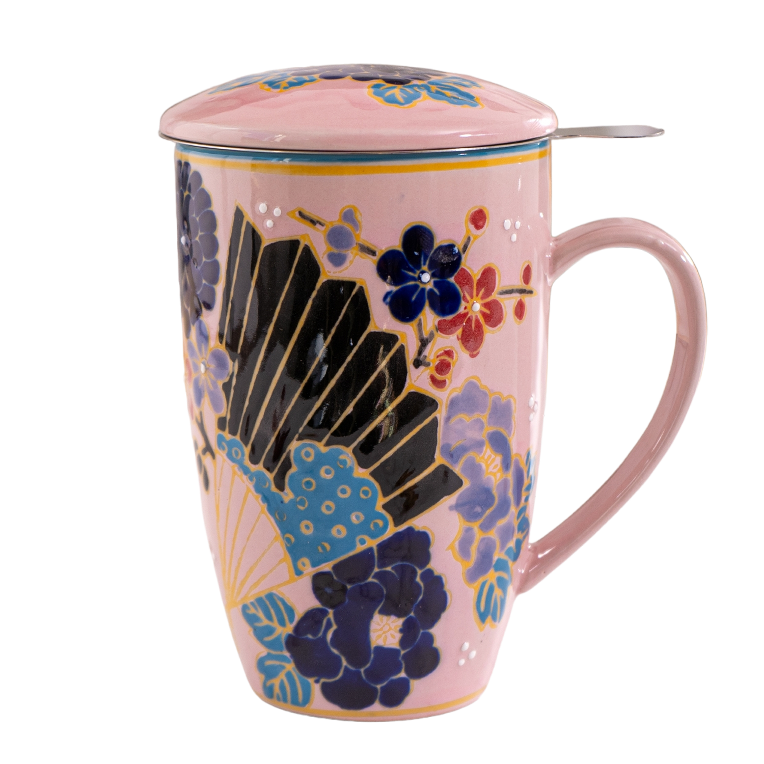 Festival Fan Design 15oz Tea Mugs with Lid and Infuser
