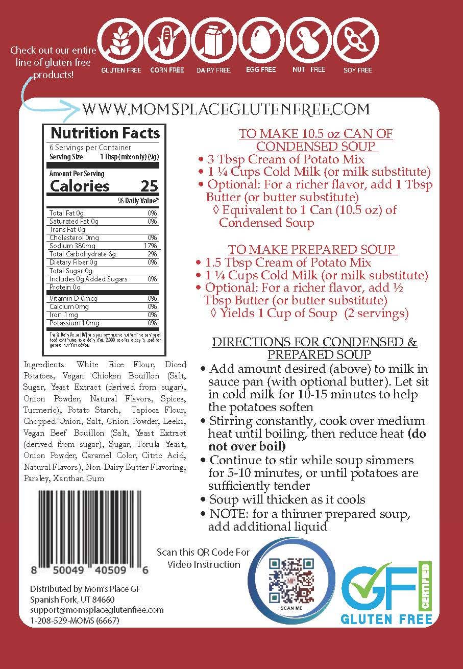 GREAT TASTING: Try Mom’s Place Gluten-Free Cream of Potato Soup Mix and enjoy a delicious, savory gluten-free soup or recipe base without sacrificing taste or flavor.