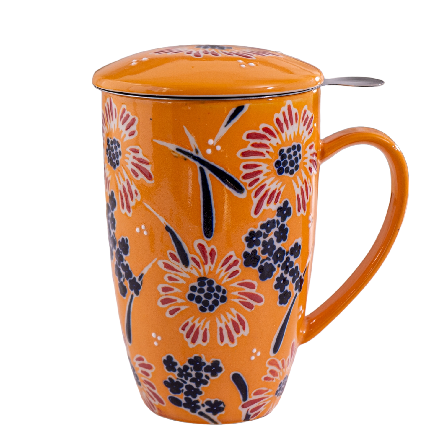 Material: Porcelain Mug and Lid, Stainless Steel Strainer